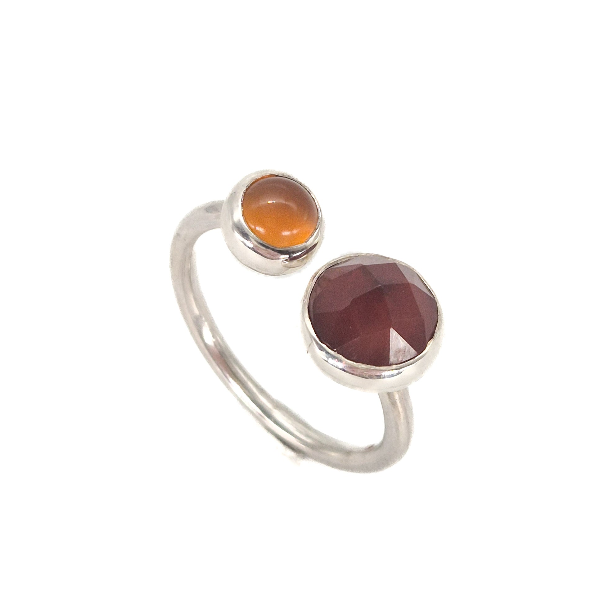 Super leuke verstelbare ring met een carneool en citrien. De ring is gemaakt van sterling zilver en kan door te buigen op maat gemaakt worden.
